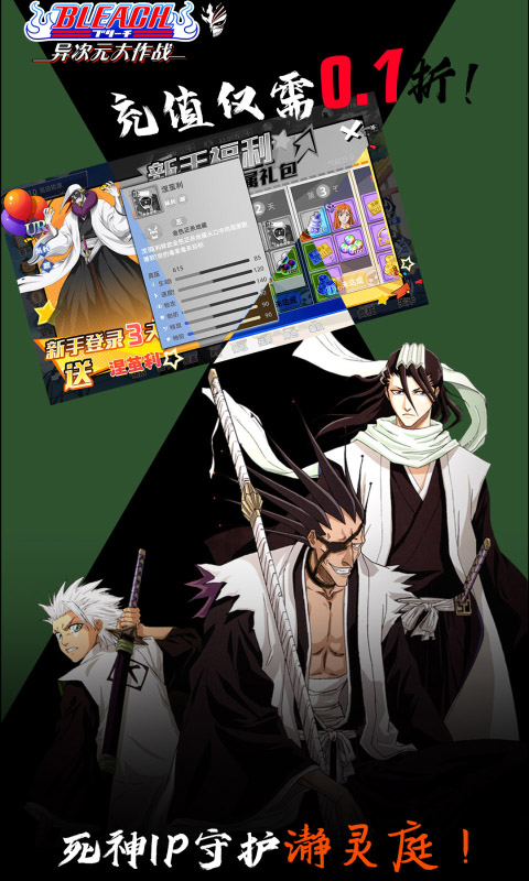 4、新手福利再领千元死神翎,双UR队长涅茧利、朽木白哉参上;