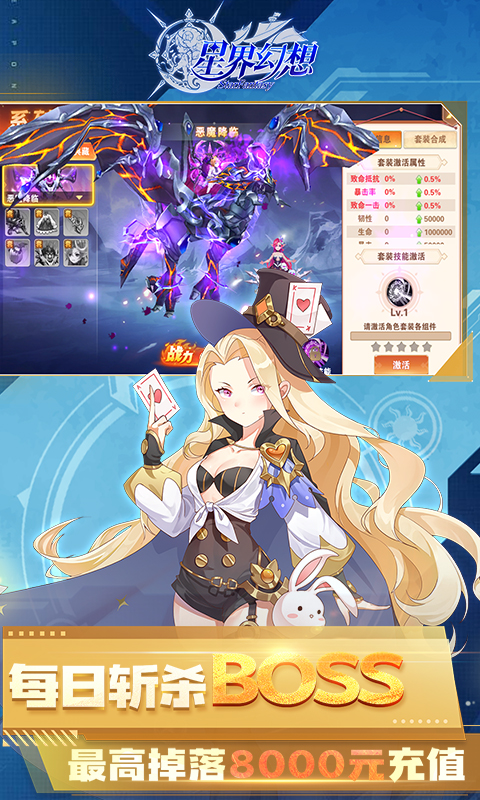 ②恶魔降临套装升星卡*5,5星神印自选礼包*5,粉色坐骑伙伴装备自选箱*10,8攻击宝石*1,8级生命宝石*1
