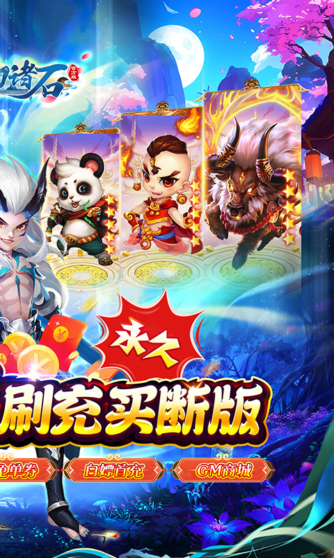 永久折后实付累充50元:圣兽之灵*50,指定属性丹*5,1亿经验*1,免费直充额度1000元*5