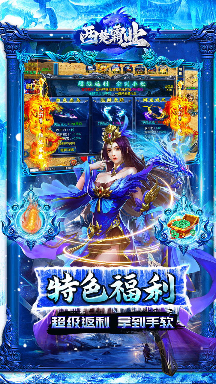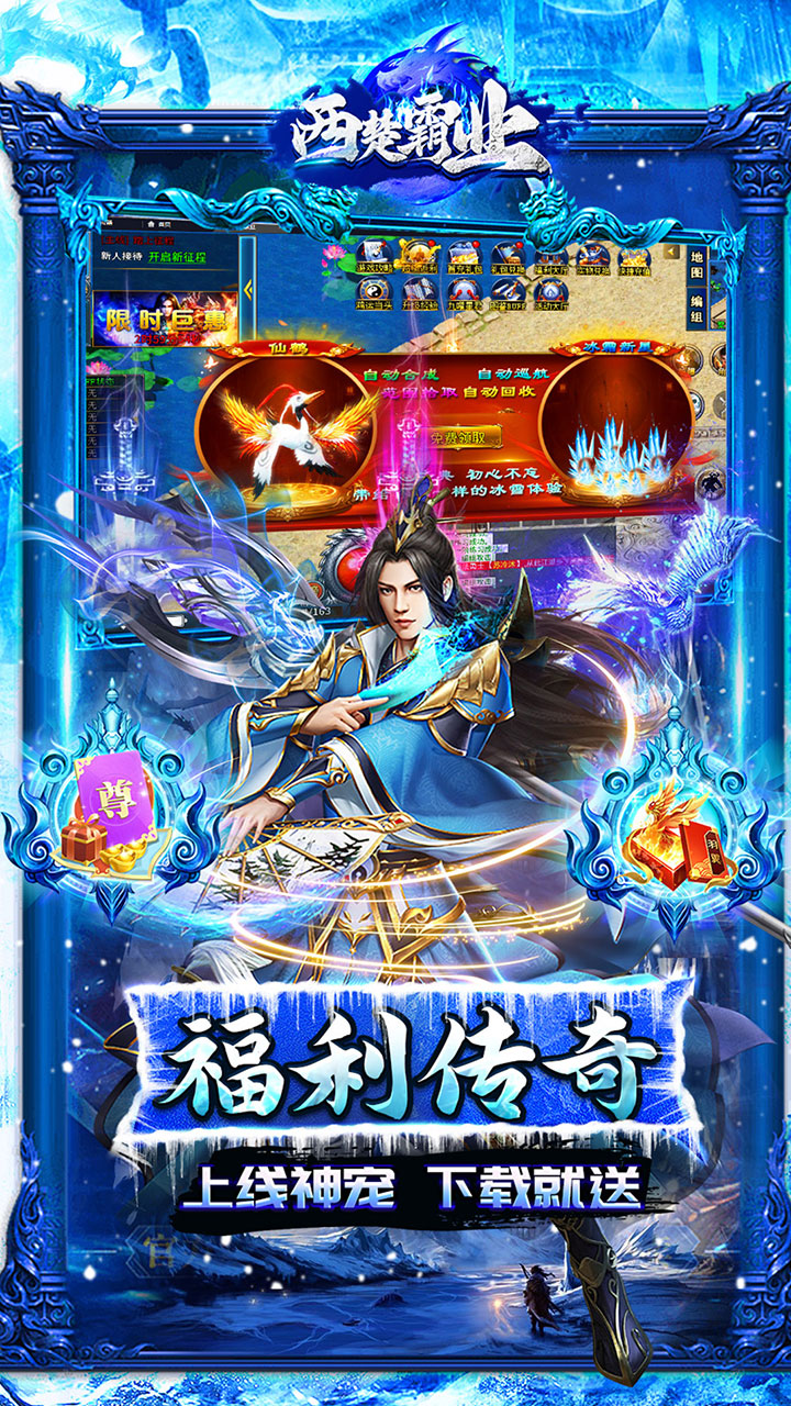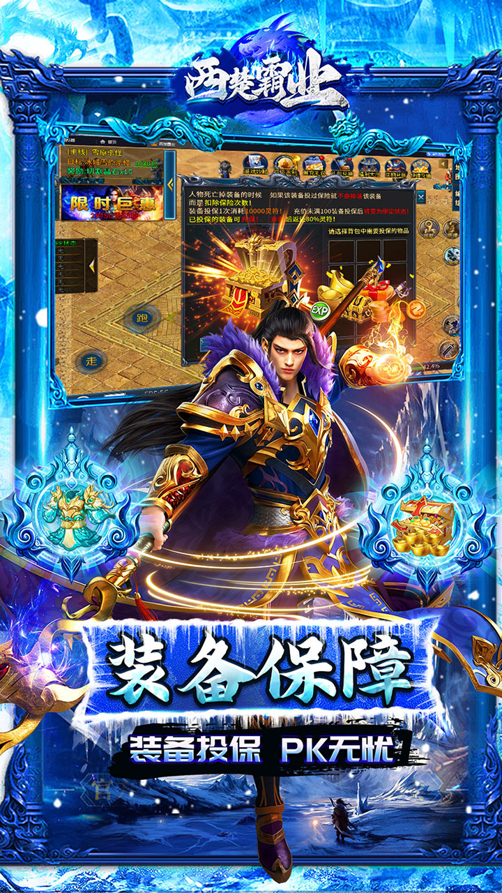 《西楚霸业(冰雪神宠爽爆充)》是一款超爽送充散人爽服!创建角色神宠,送自动合成,送自动回收,自动拾取,酷爽福利嗨到爆!超超变传奇,一秒十刀,刀刀切割,享受超爽打金快感,炫酷的技能特效,极品装备爆满屏,让玩家享受豪华的视觉盛宴!福利多活动多,散人逆袭为王!冰雪传奇,好玩不无聊!激情对战,热血攻沙,呼朋唤友,一起征战传奇世界!