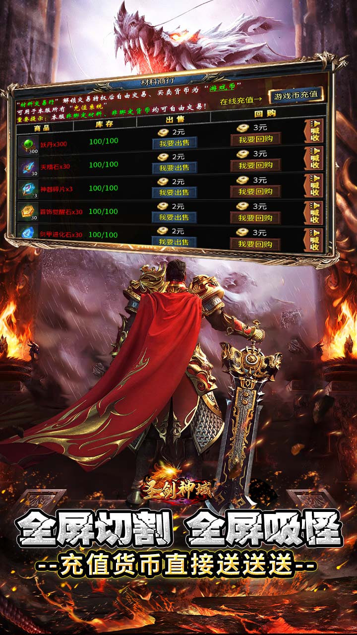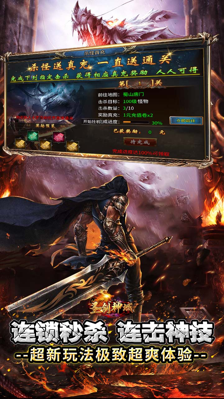 1、上线送全屏切割,全屏吸怪!杀怪领真充!