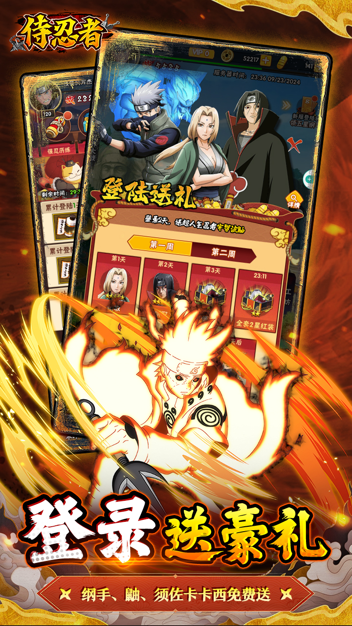 4、冠名奖励(礼包码形式):至尊勾玉*1,影觉忍者自选宝箱*10,红色4星装备自选箱*3,禁术忍法帖*20
