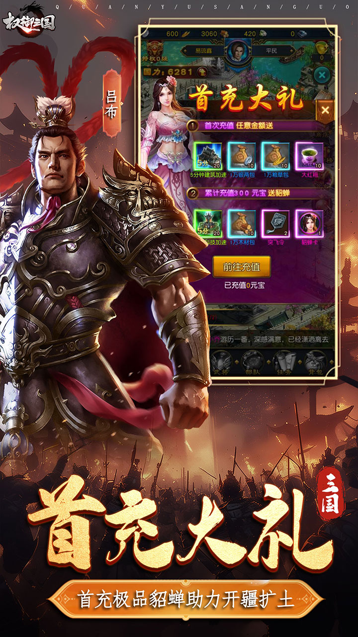 至尊会员礼包:武魂*800,强化石*600,天资丹*300,神兵刷新令*50,1小时建筑加速*5,三国元老挂件*1