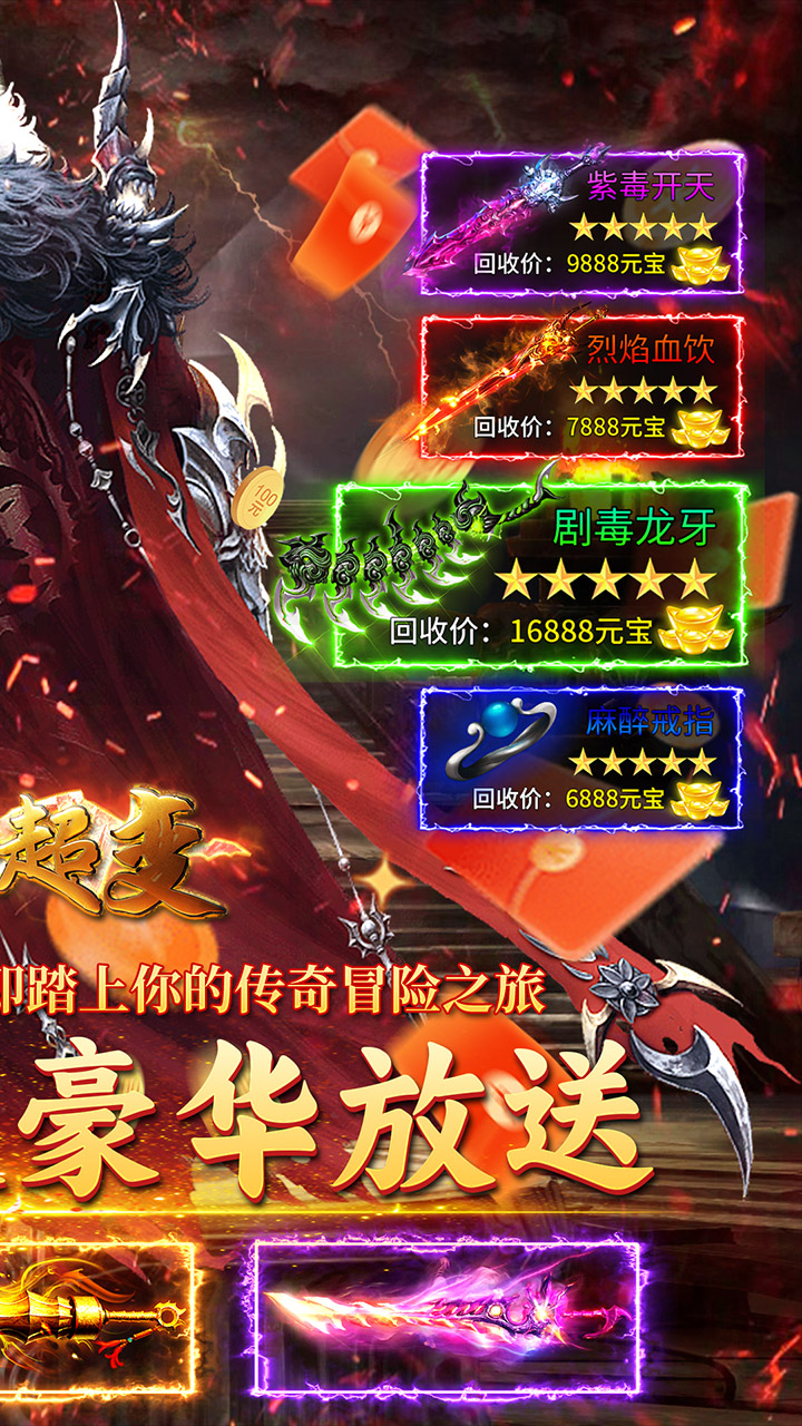 上线就送神器4件套,送VIP10 自动拾取回收,魅影疾驰坐骑,共有34个大陆,砍怪就送充值货币,每日登录就赠送一次改命机会连续登录8天获得全部,共可获得价值8744元奖励