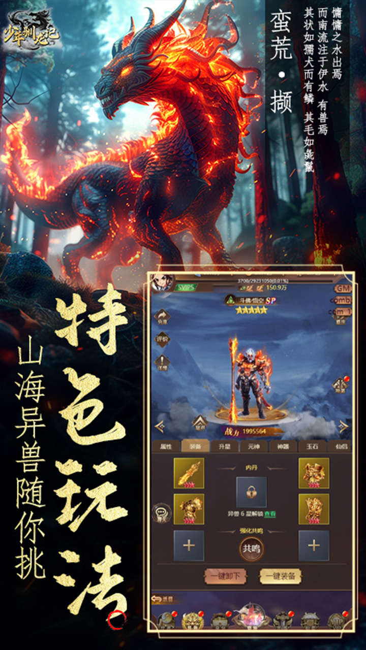 永久累充5000元:SP异兽任选*2;金色仙侣碎片任选礼包*20;魔魂之心*200;觉醒石*200;战宠属性丹*15