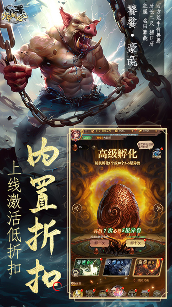 永久累充10000元:SP异兽任选*3;金色仙侣碎片任选礼包*30;魔魂之心*300;觉醒石*300;战宠属性丹*20