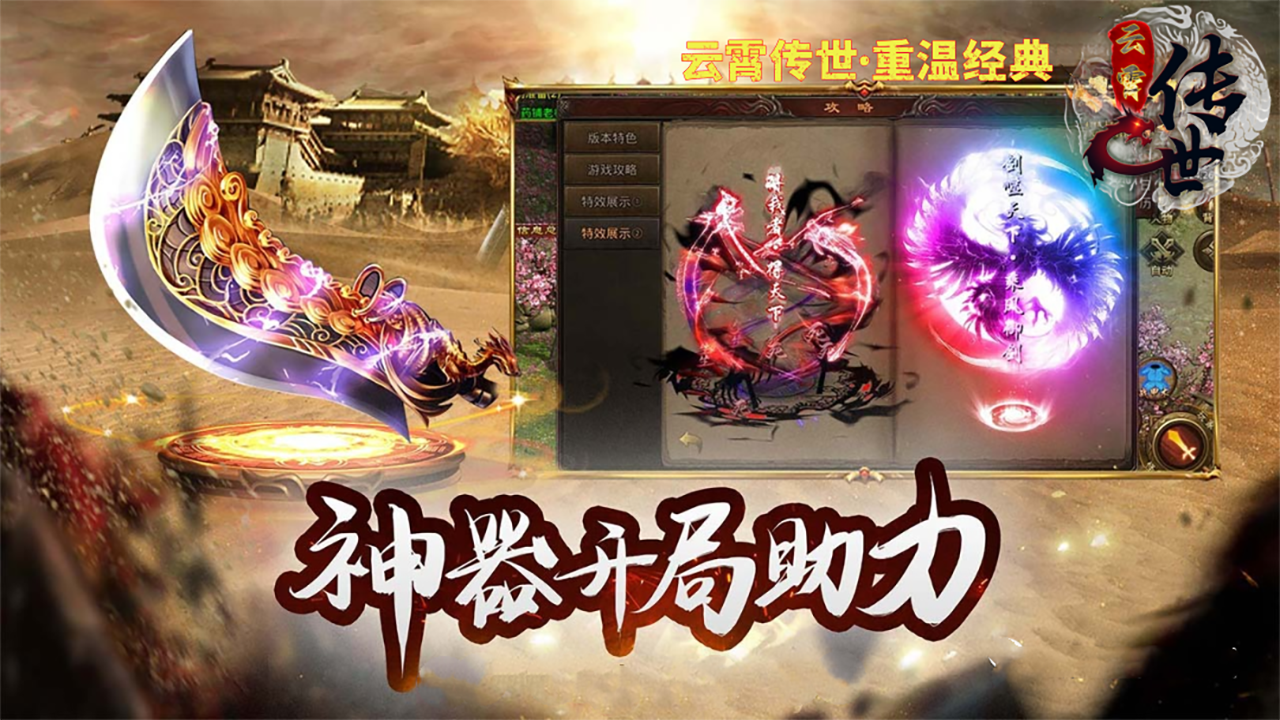 《云霄传世》是一款以魔幻世界为背景的即时动作类手机网络游戏。在游戏中,玩家可以从战士、法师、道士中选择一个职业,通过不断完成任务、击杀怪物等手段获得材料和装备不断提升自己的实力,组建行会一起团结奋战,享受组队战斗的乐趣。