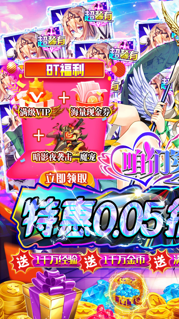 永久累充5000元:钻石*1000000,专属秘宝*400,六星卡*20,现金券*5000