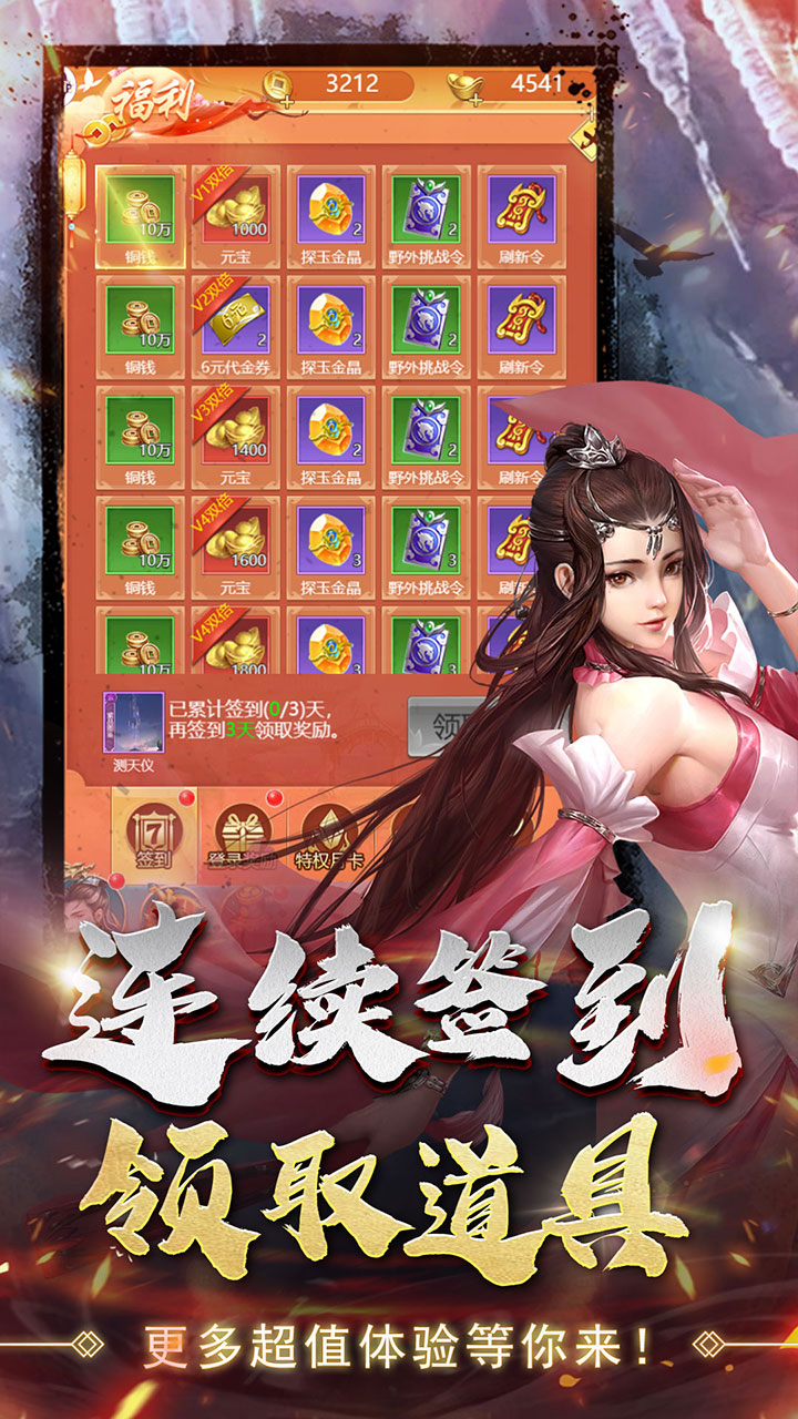 ##金条*15、装备寻宝卷*20、无极至宝*1、高级天书盒*5、奇观图鉴包*2
