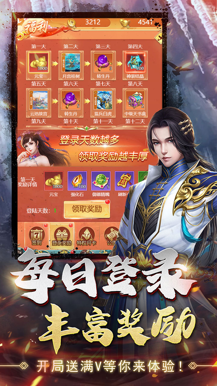 ##金条*5、精炼石*10000、聚灵石*500、神装结晶*50、仙纹寻宝卷*10