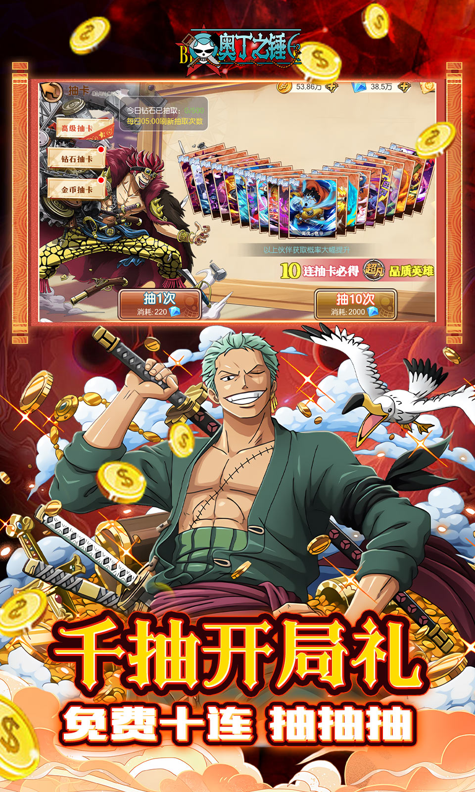 方案2:限定彩金伙伴任选包*1(打开可在冥王·雷利,火拳·艾斯,雷神艾尼路,卡普中任选1个)