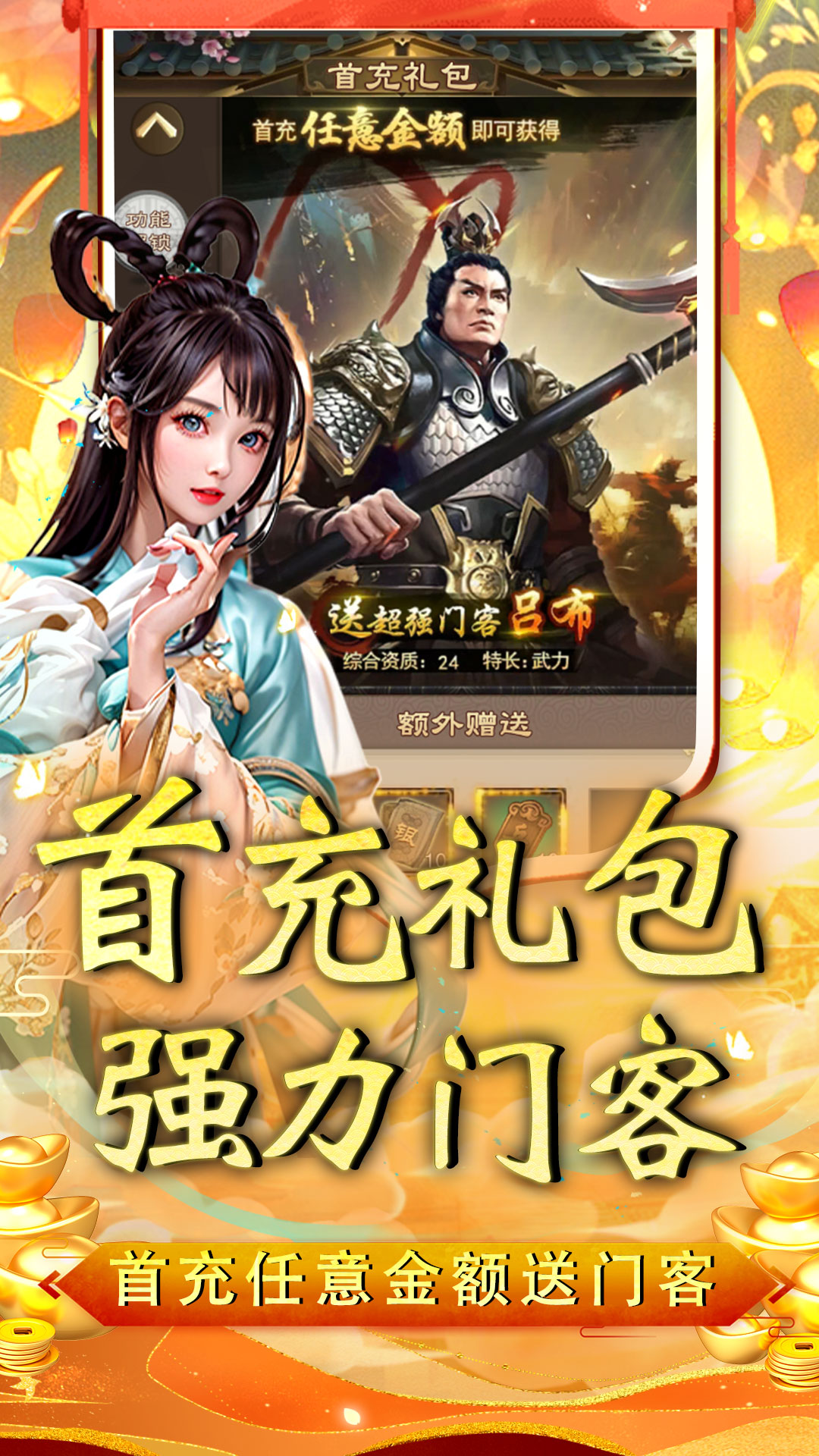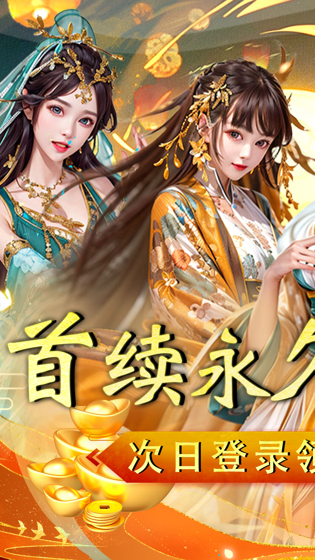 单日累充100元:活力丹*500、天书礼包*20000、指环*20000、项链*20000、属性道书*2000、绝技礼盒*2000、人皇三件套*1