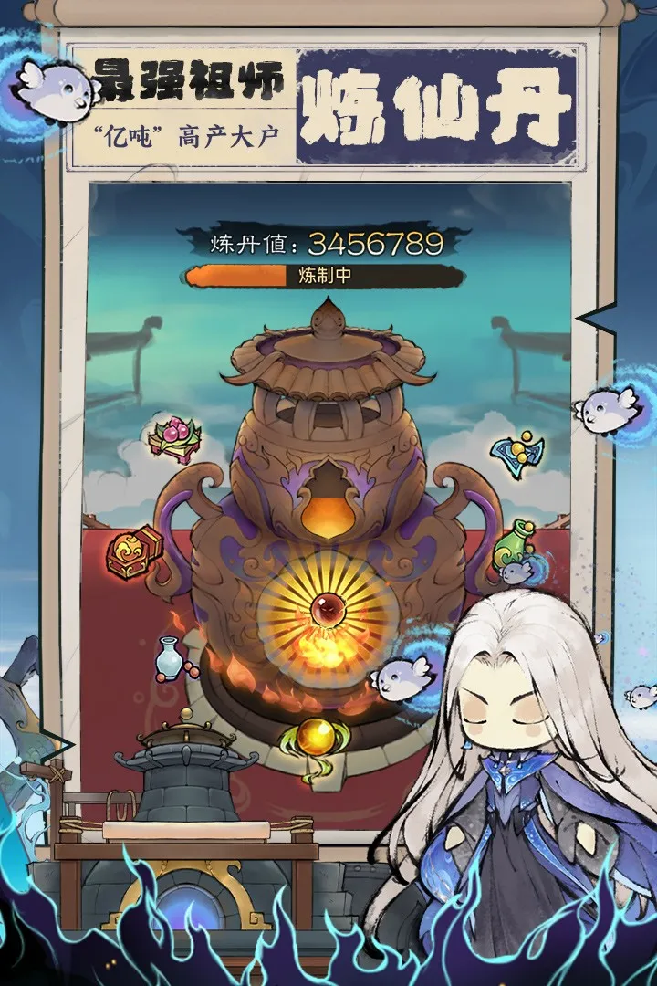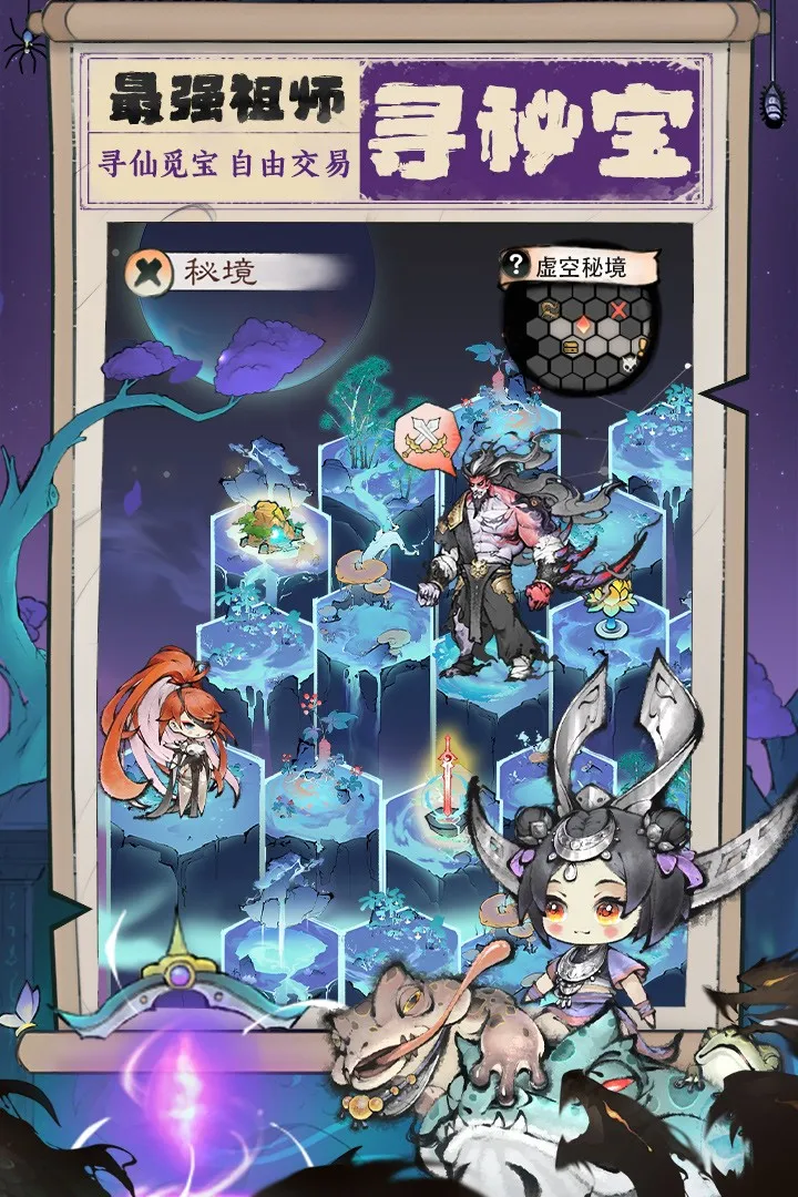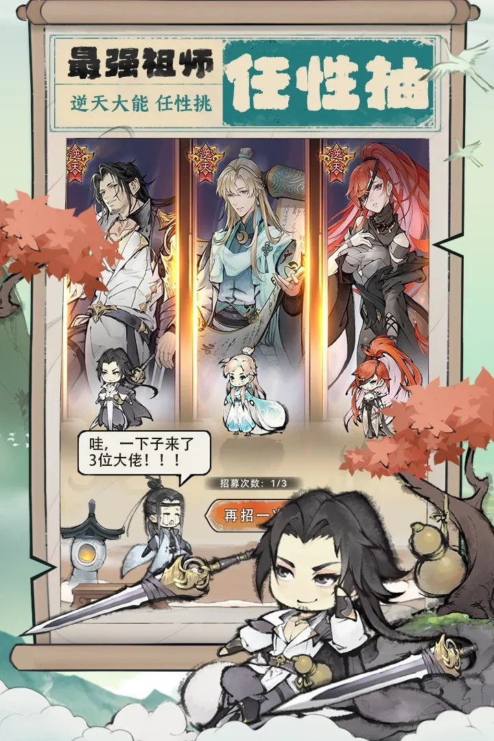 这是一款躺着也能变强的水墨国风修仙手游。 作为祖师的你,需要开宗立派、寻觅仙缘,助一众弟子们渡劫成仙。