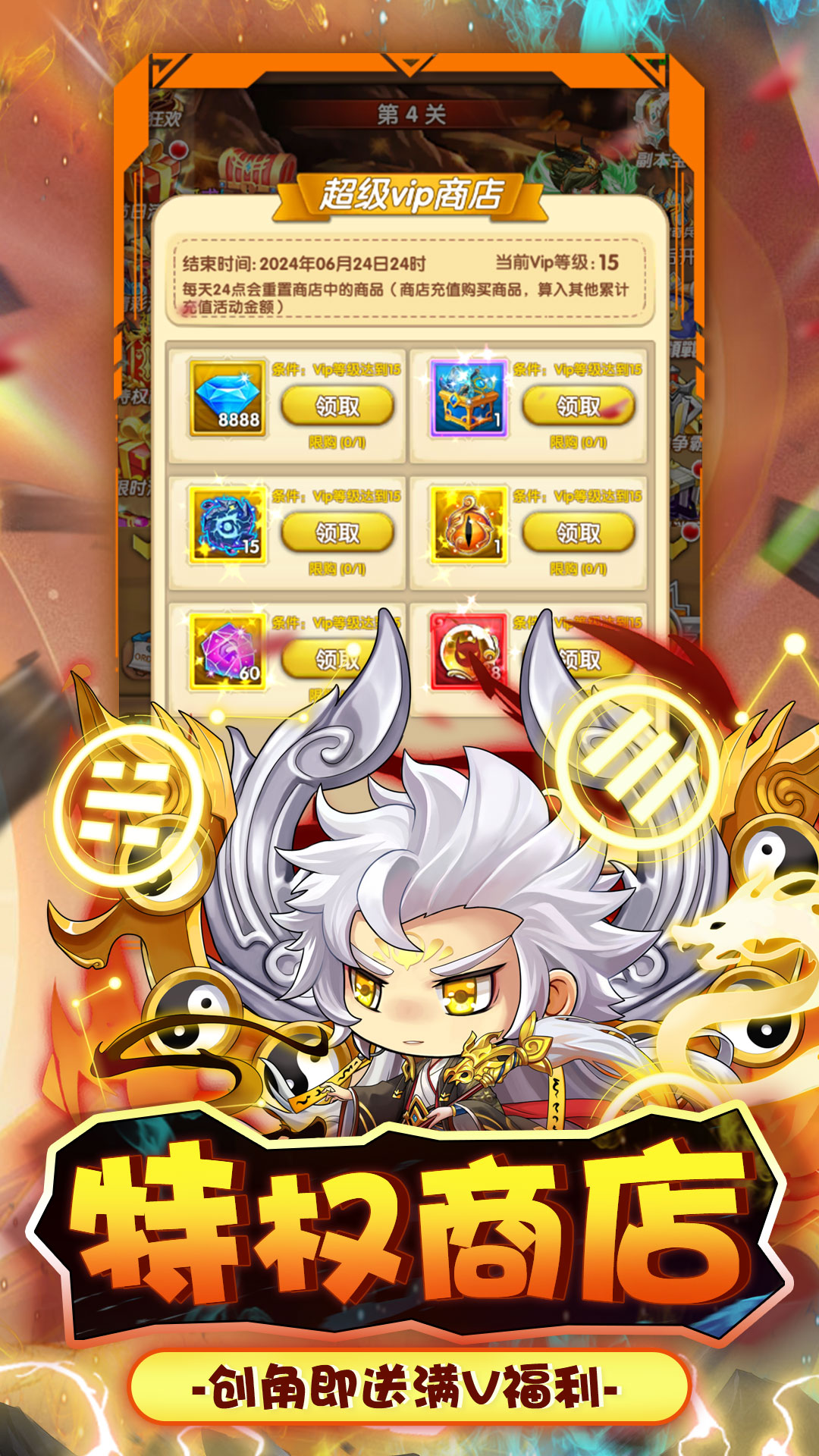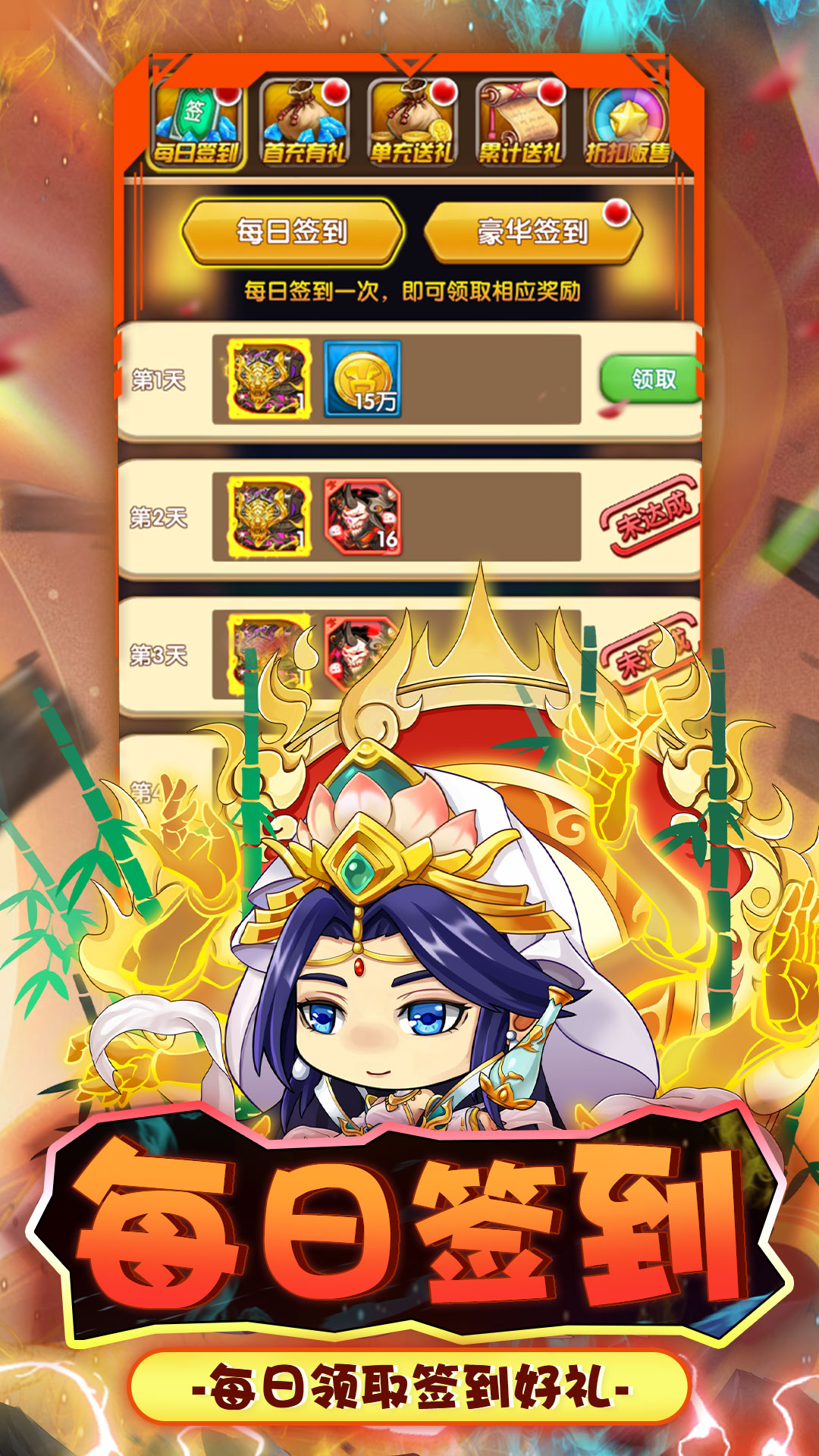 活动规则:活动为单日累充活动,按照0.1折后真实金额计算,高档位可领低档位道具,每个档位每日仅可领取一次