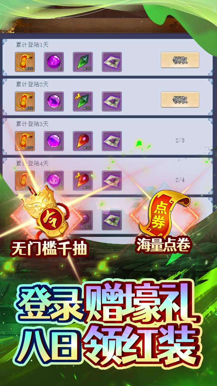 登陆赠壕礼:登陆直接领取点券卡,第八日更有红装宝箱