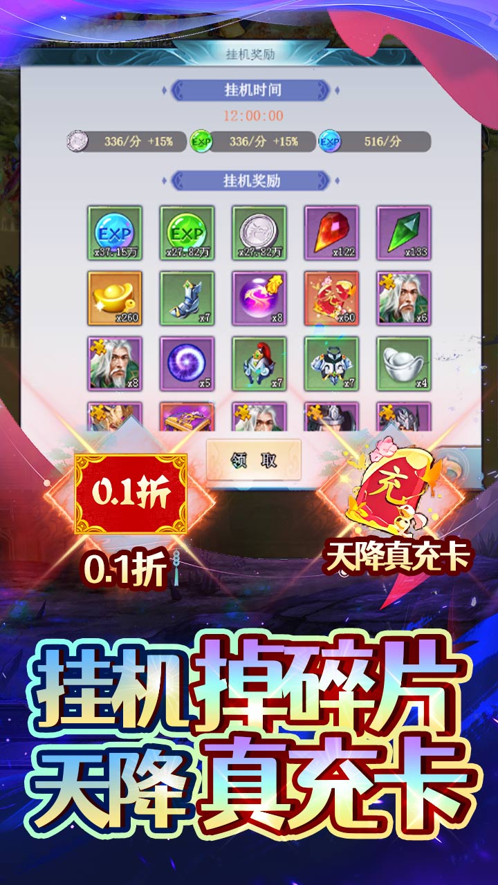 挂机掉碎片:自动挂机掉落元宝卡、装备箱子碎片,关卡越高道具更稀有