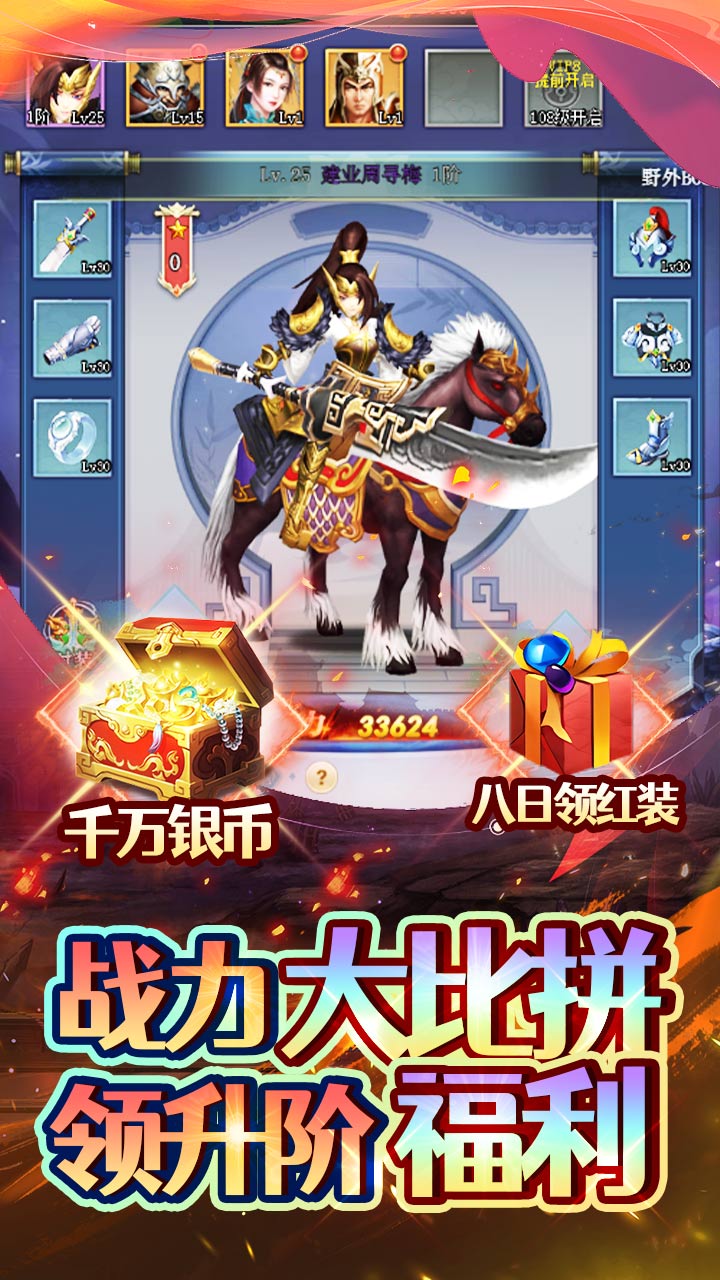 一款以三国为背景的挂机策略游戏。在乱世中斗智斗勇,打造出自己的最强武将,感受战争的乐趣一统江山。玩家可以通过主城任务,闯关等方式获取资源。准备好加入战场对抗千军万马,合理利用天时地利人和,管理资源,运筹帷幄,成为游戏中真正的霸主!
