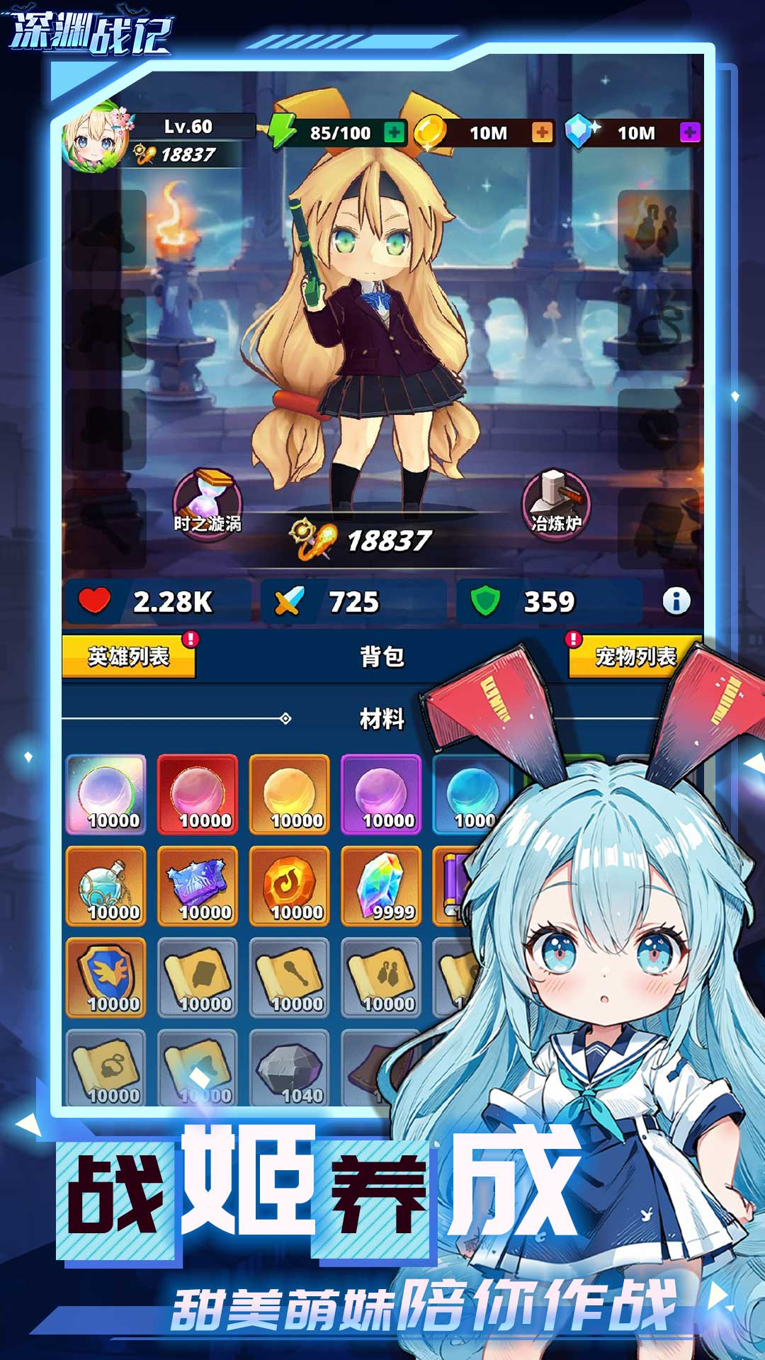 一款肉鸽冒险动作射击RPG爽游。在神秘而奇幻的深渊世界,你以二次元女战士的身份惊艳苏醒。四周,邪恶的怪物如汹涌潮水般不断涌来,而你手中紧握的枪械,以及心中熊熊燃烧的战意,便是你在这充满挑战的世界里最为坚实的依靠。