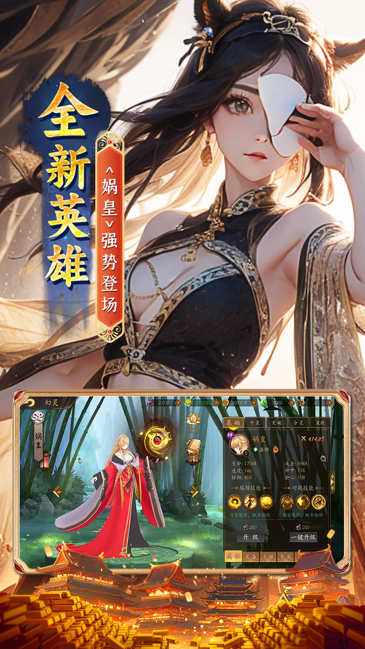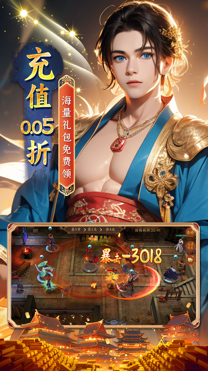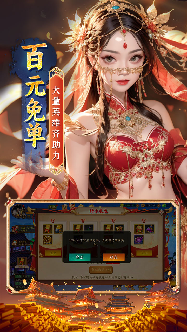 悠唐天下(0.05折百元免单)是一款糅合了玄幻色彩的唐风角色扮演游戏,新版本中加入SP“女娲”、"小龙女"等大量新英雄,全新版本,全新体验。在这个引人注目的奇幻故事中,玩家将置身于唐风的游戏背景中,扮演保护王朝的角色,参与一场场刺激的塔防战。玩家可以自由搭配角色参与战斗,享受各种层出不穷的玩法,进游永久享受所有充值档位打0.05折,百元以下所有充值免单,登录送UR英雄,升级即送充值卡,闯关掉大量红包!