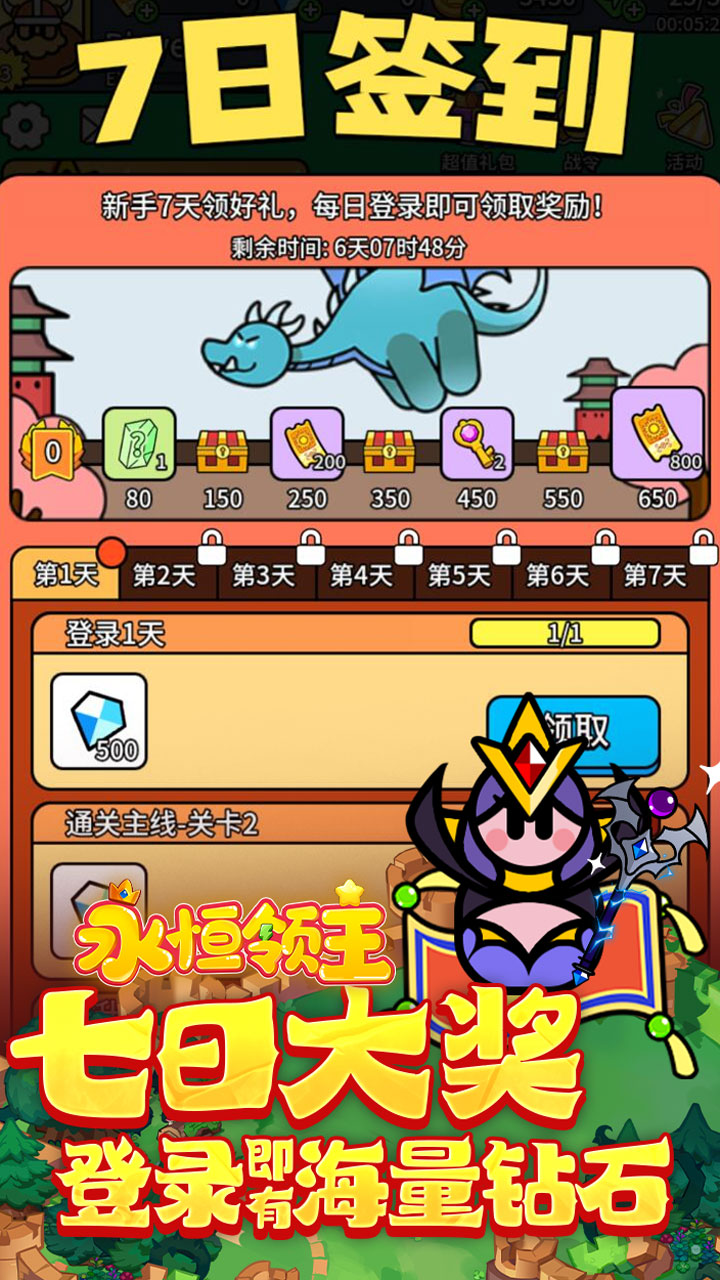 玩家创角首日真实充值满500元(折后),即可领取勇者征程助力礼包一份。