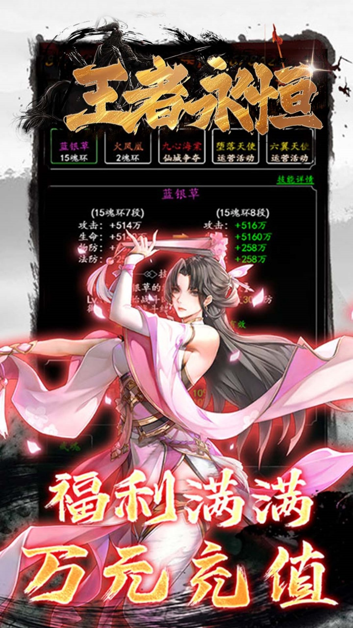历史累计充值15000元:斗圣 * 1,★★★死亡蛛皇 * 1,噬血狂魔身·法身 * 1,天书进阶神石 * 15000,天书精炼神石 * 15000