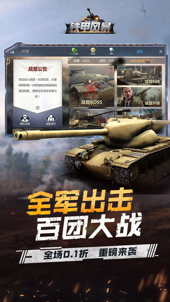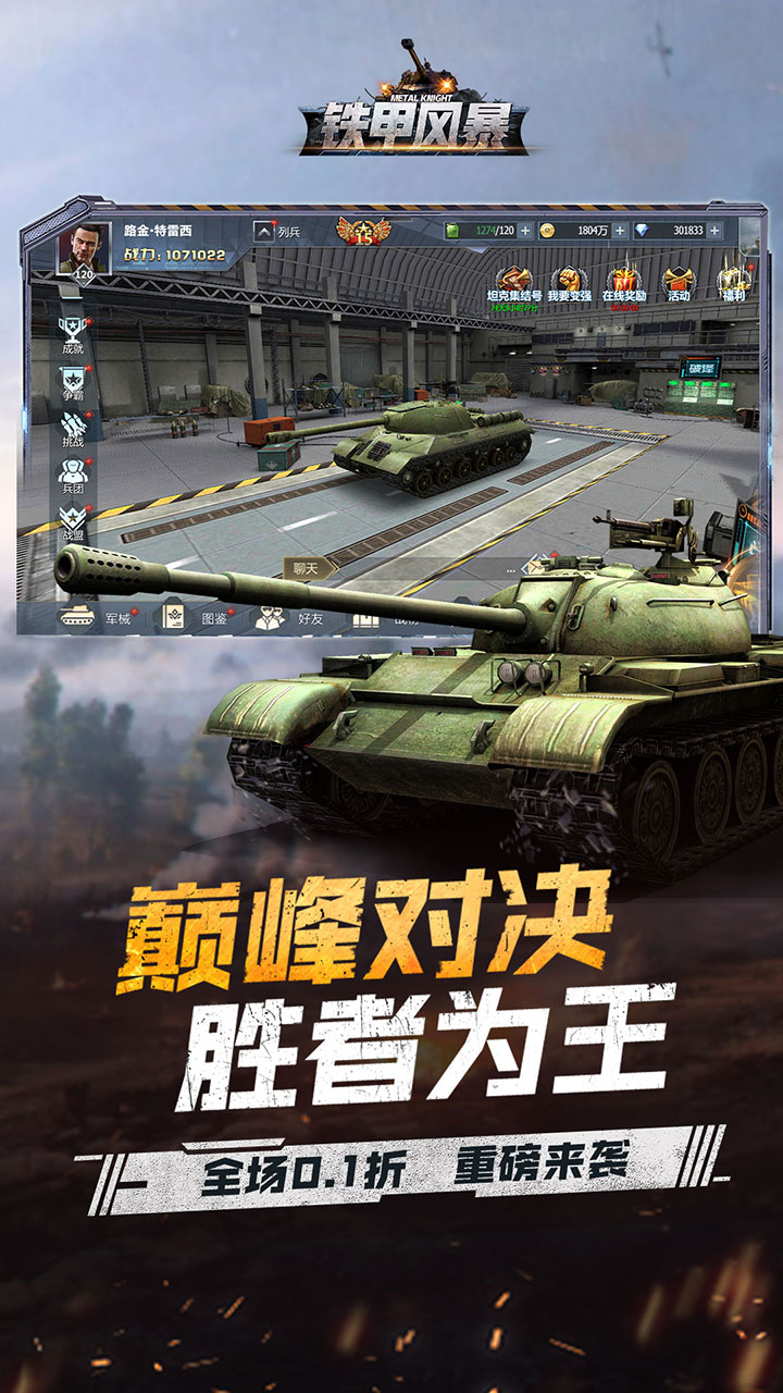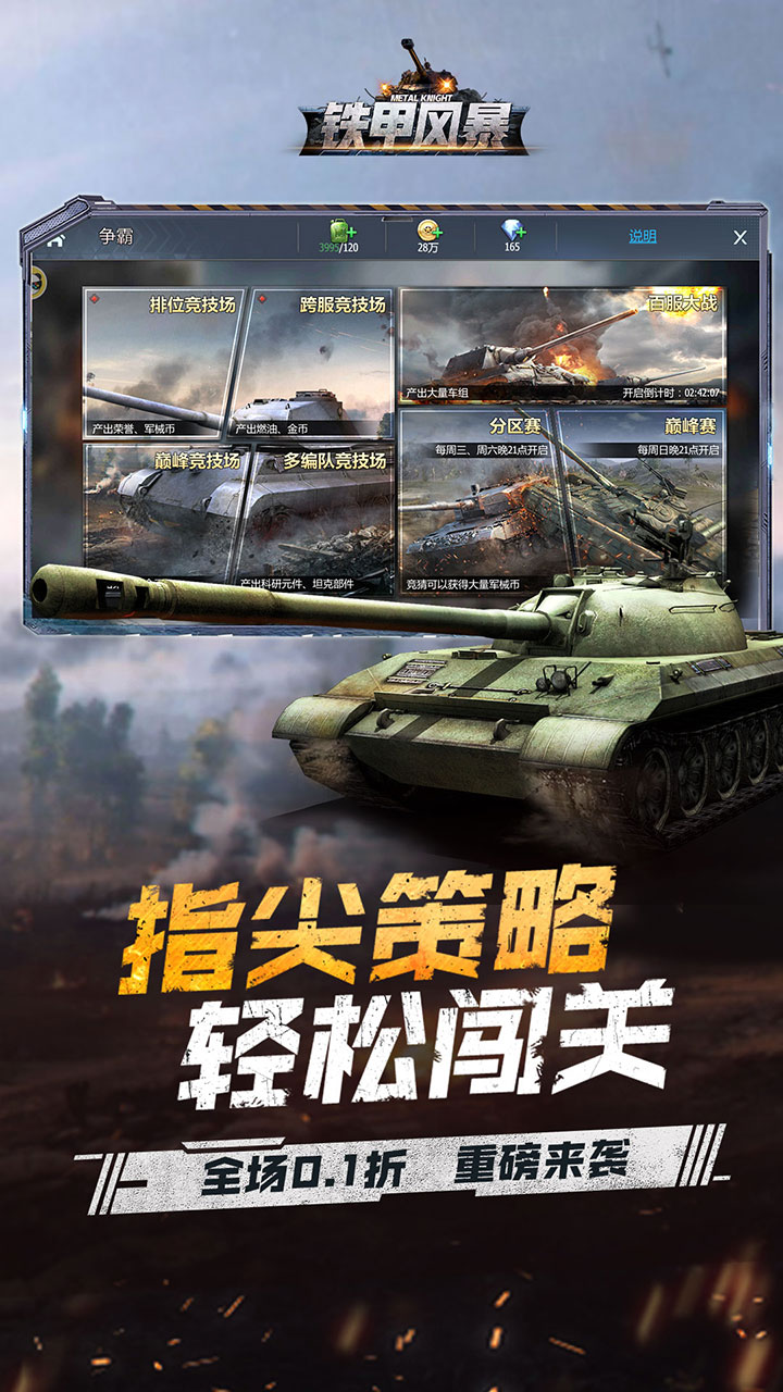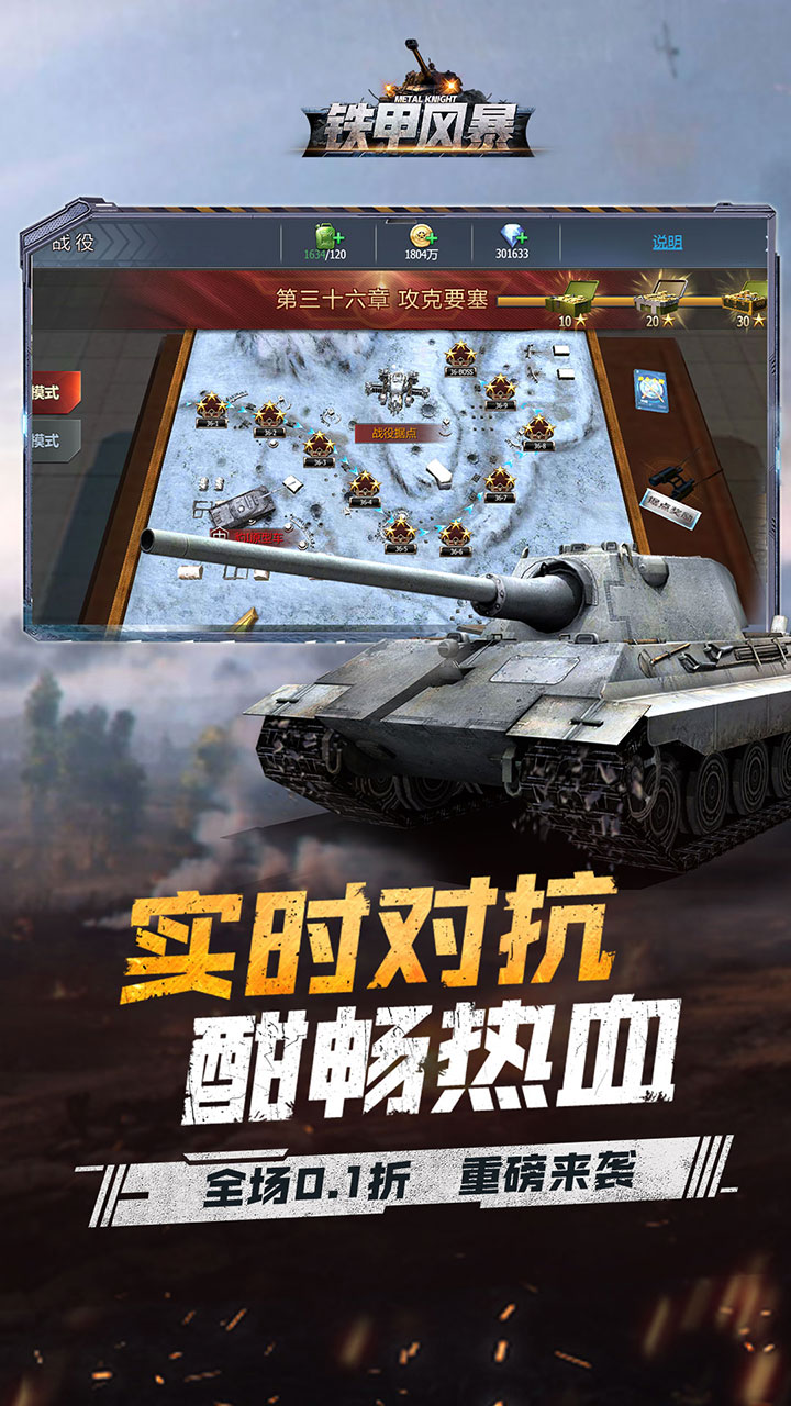 《铁甲风暴》是一款3D策略卡牌游戏,题材取自二战坦克战争,以收集各类传奇坦克及坦克策略搭配为核心玩法,社区化、阵营化合作与竞争为辅助手段。 游戏内具有坦克升级、配件升级升星、坦克科研、改造、进阶、车组收集及培养等多种养成玩法。 游戏玩法丰富,具有战役关卡、无尽挑战、金币副本、功勋副本、升星副本等多种PVE玩法,功勋之战、钢铁巨兽等间接PVP玩法,排位竞技场、跨服竞技场、巅峰竞技场、多编队竞技场、百服大战、分区赛、巅峰赛等强PVP玩法。 游戏战盟、兵团两大团体性系统中包含多种GVE、GVG玩法,其中嵌入到兵团内的社团玩法带来小团体养成,战盟玩法带来社群群体化交互性需求,兵团类似国家阵营概念,为GVG国战玩法提供土壤,营地养成、掠夺与社团玩法紧密结合,为玩家带来或对抗或合作的乐趣,增加游戏留存黏性。 百服大战的天梯段位、多编队竞技场对抗中的王者段位,成就玩家对抗的巅峰舞台!