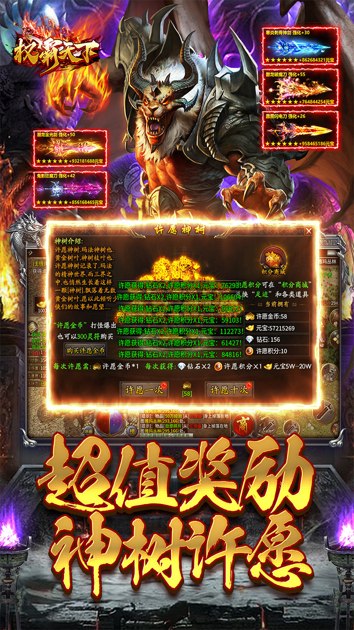每个新服开服前五天累计充值达到指定条件,即可领取以下奖励: