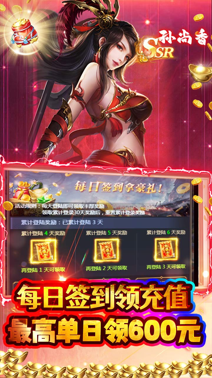 单日累充60000元(实付300元):彩将碎片自选包*30,红将无双碎片礼包*100