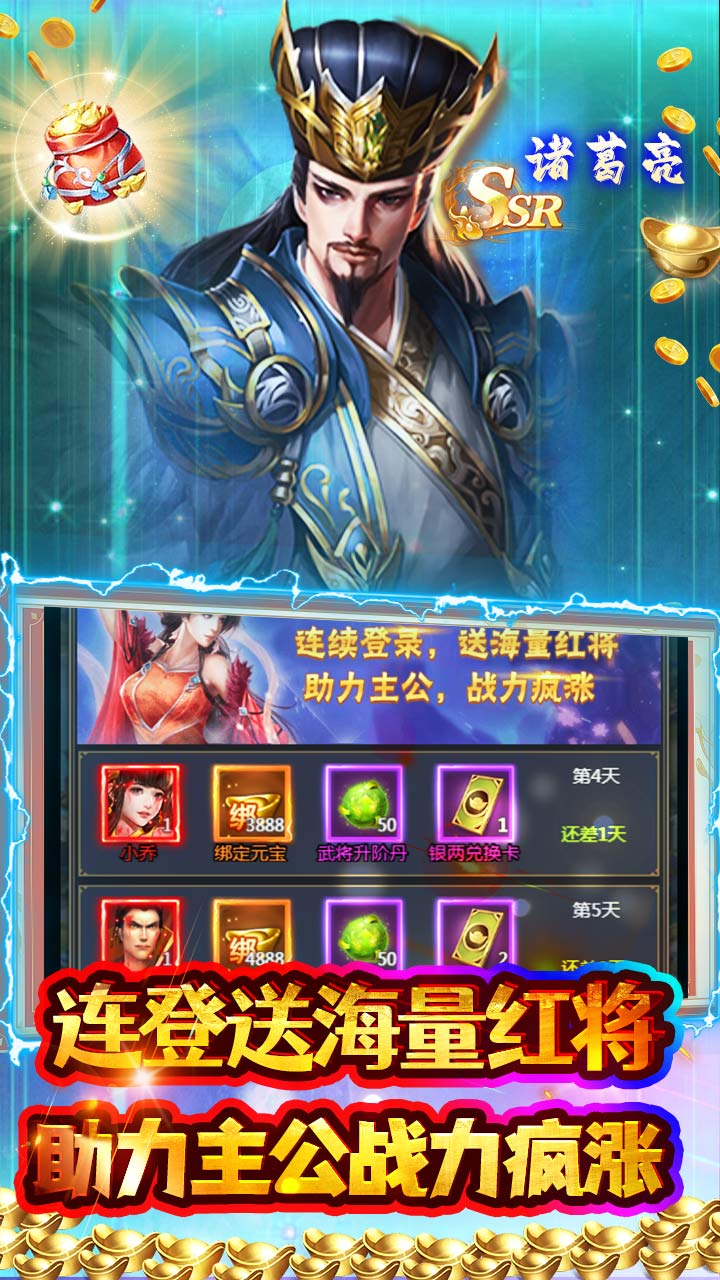 单日累充200000元(实付1000元):彩将碎片自选包*100,神化丹*100,武将觉醒丹*300,红将无双碎片礼包*300