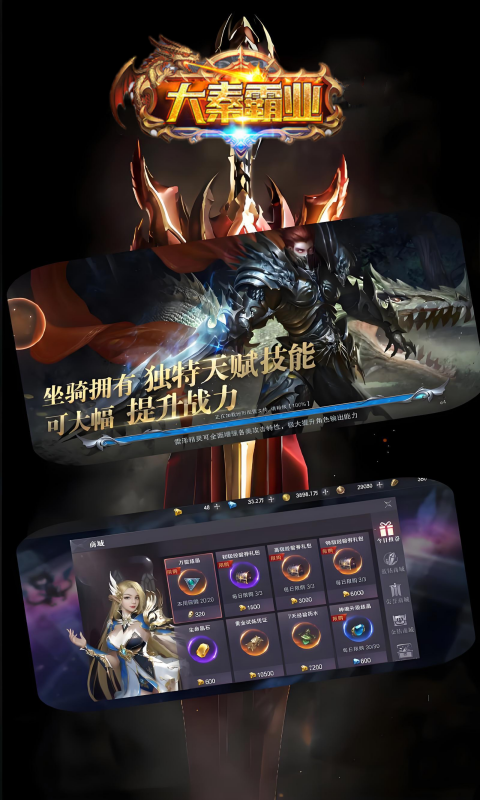 《大秦霸业》是一款暗夜天使竞技RPG冒险战斗养成类手游,精彩绝伦的暗夜魔域故事,天使女神的跟随将给你带来无限战力,还有超燃劲爆的PVP竞技对抗玩法,还有各大阵营的生死之战,万人参与其中的魔幻争霸战,各种酷炫坐骑神兽等你来收集,快携手你的兄弟一争霸天下!