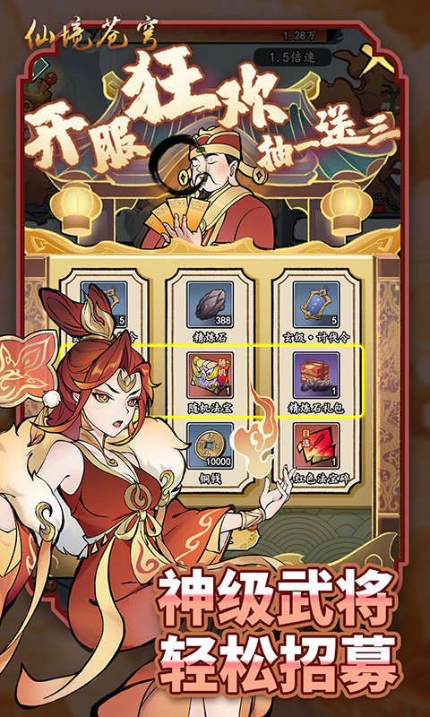 10000元 仙玉1000000 铜钱100000000 自选碎片10000 随机碎片 10000 进阶丹 1000000 精炼石 1000000