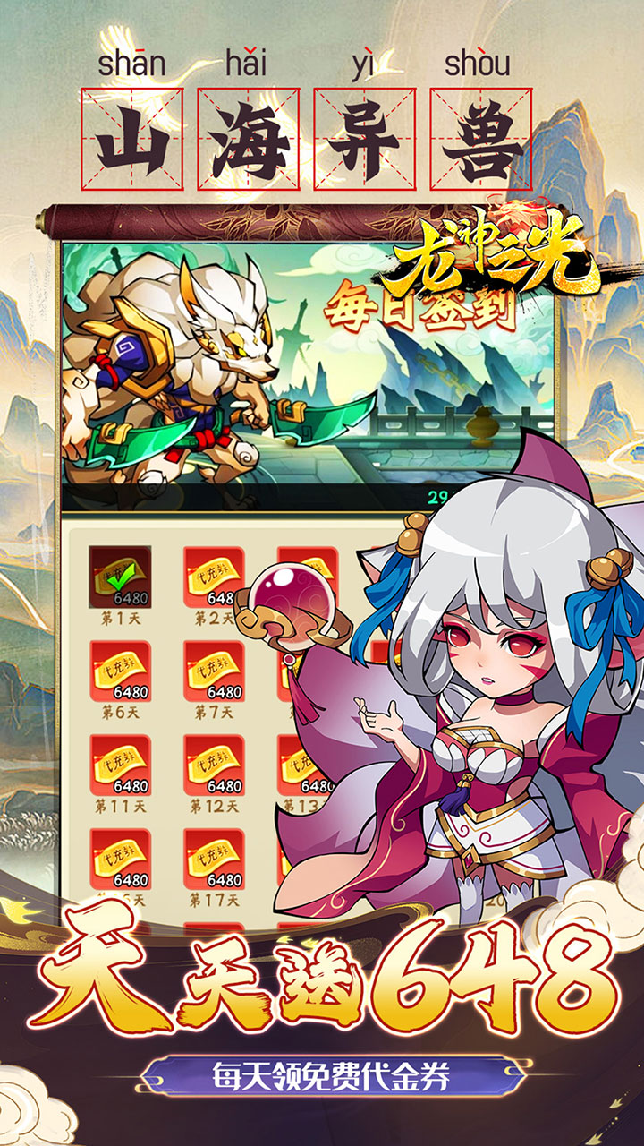 单日折后实付累充50元:修为石*20000、红色任选碎片*30、玄铁石*10000、圣器召唤令*20、异兽召唤令*20