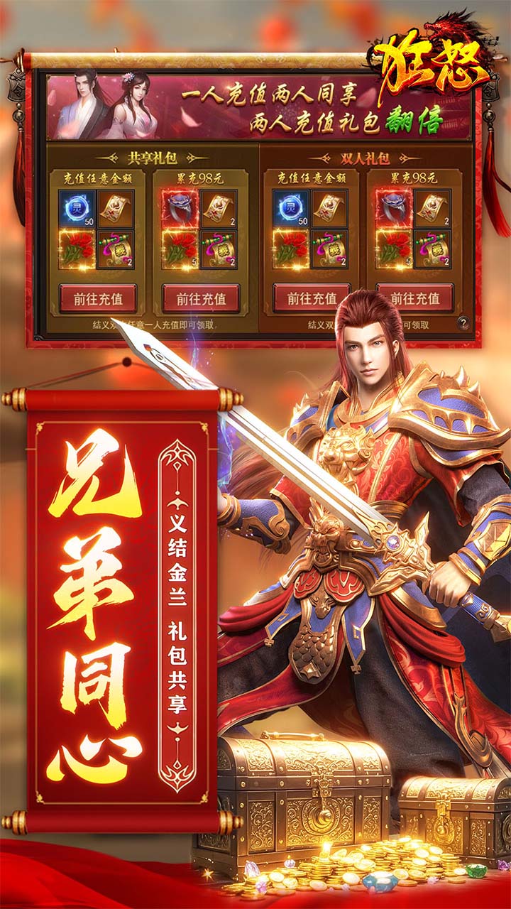 《狂怒》是一款冰雪版本的经典三职业传奇游戏,玛法大陆上的龙穴宝库全天候开放,骨灰级玩家齐聚沙巴克,热血攻沙,拒绝外挂,原生态绿色激情,全新酷炫版本,三职业高伤高爆,装备永久保值,自由交易。福利地图爆钻石,平民还能爆真充,VIP上线就送,宠物全程相伴,神龙庆典万人在线,当年并肩作战的兄弟都回来了!还是当年的感觉!