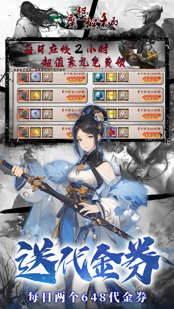 历史累计充值10000元(折前):武林宗师任选*3、倚天宝箱*2、灵宠任选宝箱*2、佛跳墙*150;