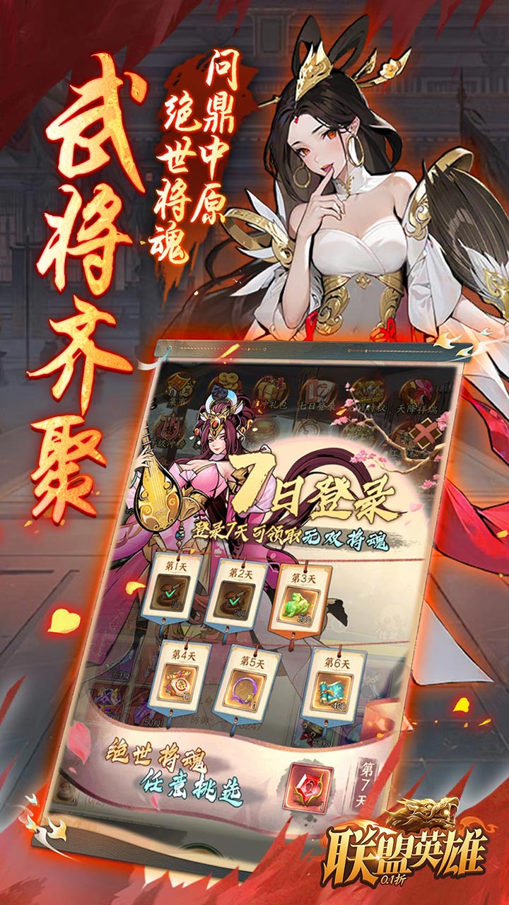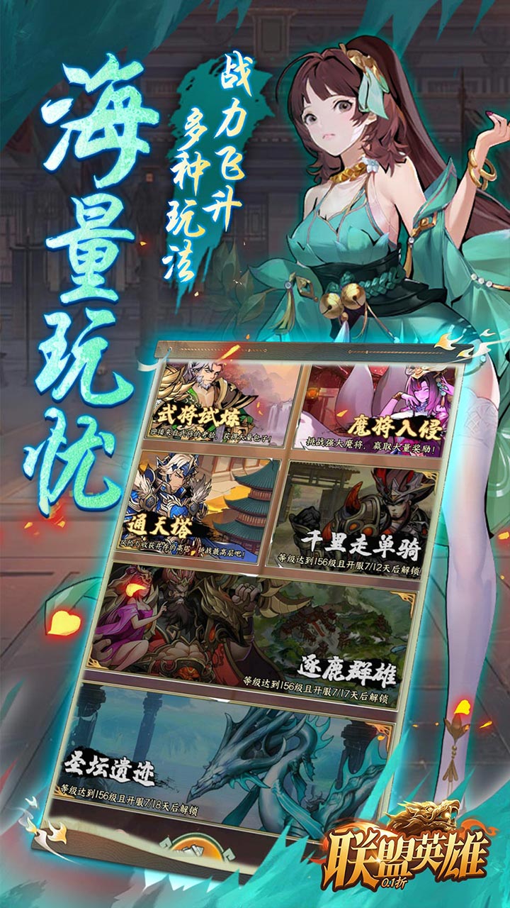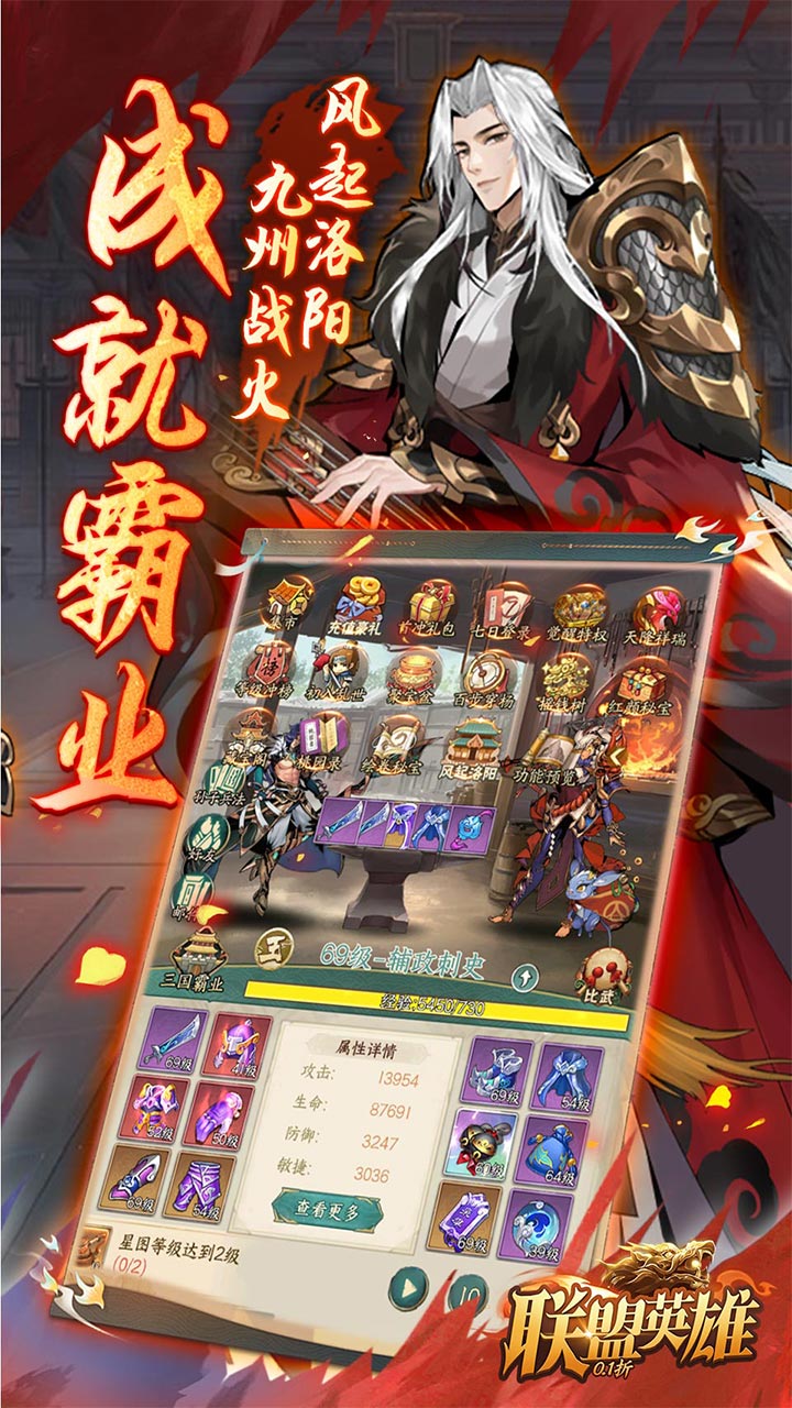 《联盟英雄(三国开箱0.1折)》滚滚长江东逝水,浪沙淘尽英雄!天下三分,群雄逐鹿,机缘奇遇,尽在此间,欢迎来到这个属于你的乱世,在这里,你将与名将异兽一同征战,并在旅途中邂逅绝美红颜,寻得奇珍秘宝,收集三国绘卷。这片土地充满奇遇,魔将涌现,通天巨塔圣兽遗迹,九州战场,唯有实力,才能助你把握机遇,闯出自己的一片天地,成就三国霸业。愿你能在这三国乱世中,书写不朽的华章!