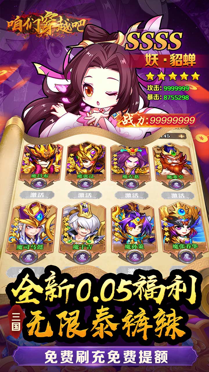 新服限时累充688元:元宝*68888,五星蜀英雄碎片*120,百年杜康*60,万能神兵*68