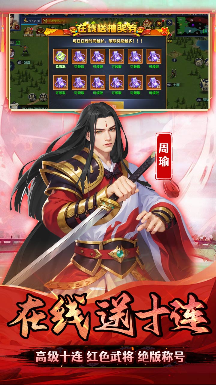 在线送十连 :高级十连、红色武将、绝版称号在线送