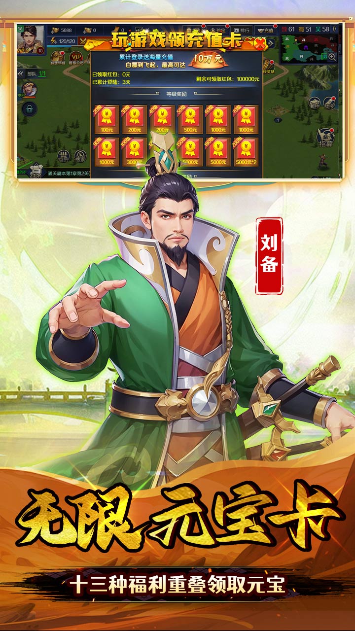 这是一款以三国题材放置挂机与战争策略结合的游戏。玩家可通过编队、技能体会到多重的策略维度、辽阔的国土战场、独特的武将技能以及瞬息万变的国战局势。带领将士排兵布阵,运筹帷幄,以夺天下!