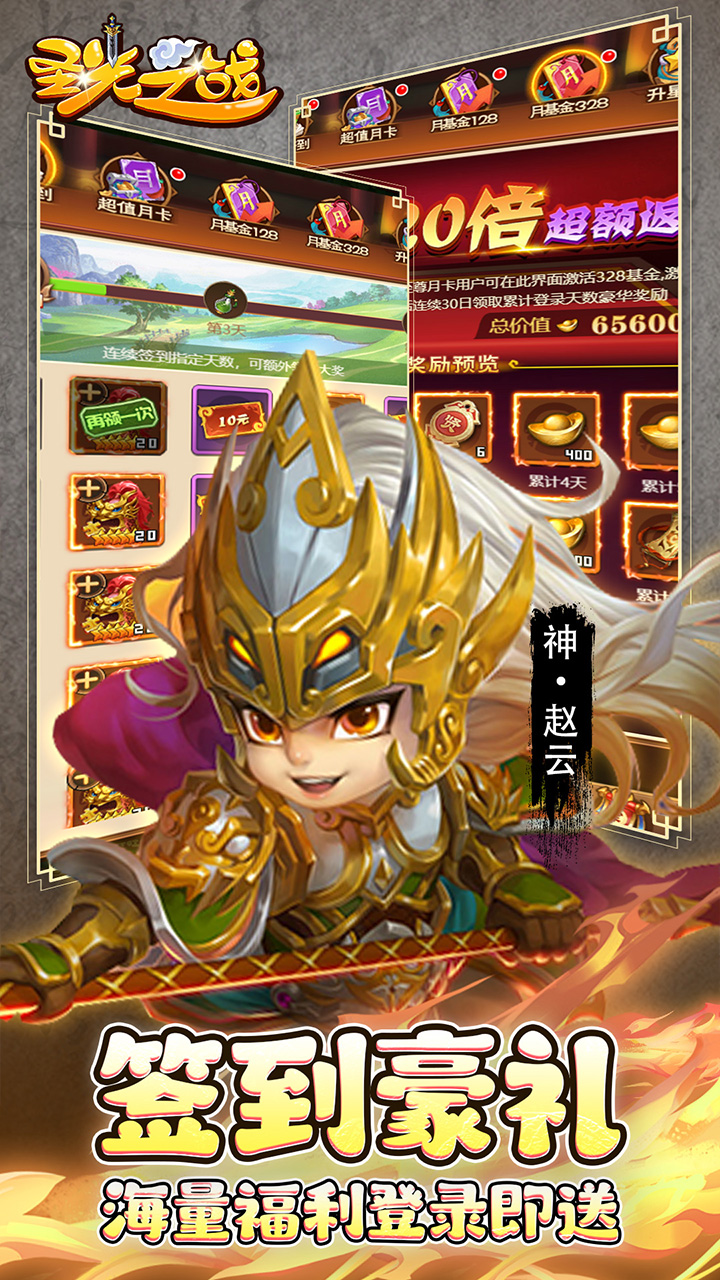 折前永久累充2000000元:欧皇无双神将卡*500、神话貔貅自选礼包*3、招贤令*100、雷霆结晶*150、侍女属性丹*20