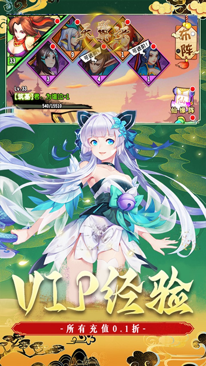 白嫖也能成大佬 在线泡点即送红包,特权经验,VIP经验 签到可领大量SSR道友碎片,最高可得SSSR道友碎片,轻松打造最强阵容 更有新人福利礼包,15W元宝,真充卡,体力道具,VIP经验等你来拿。 所有充值0.1折