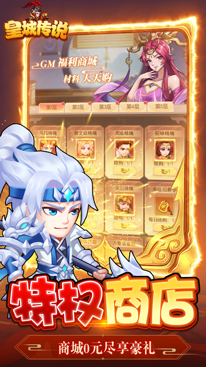 《皇城传说》是一款三国题材的放置卡牌游戏,在日常玩法上加入了各种有趣AI副本,带来全新刺激体验。大量的玩家团战PVP模式,加入策略玩法、夺城玩法,让卡牌游戏比MMORPG游戏来的更加刺激。更融入沙盒元素,让武将都在不同玩家手上拥有不同效果,配合战场上地形、天气变化,足以让每个武将因地制宜,大放异彩。团队倾力打造精美的立绘、原画,炫酷的技能特效,专属英雄等您共谱传奇!