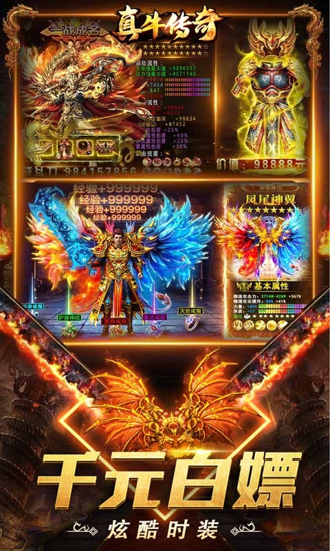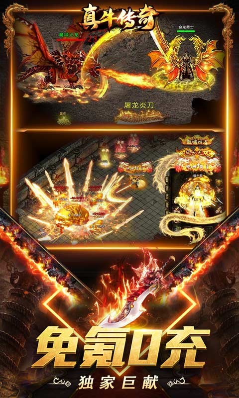 《真牛传奇(免充爆爆爆超变)》上线领取五日赞助每天都可签到,在线一定时间可领大量元宝材料,杀怪奖励给红包,等级奖励给红包,这些条件一定不容错过。【奇幻财神】,财神可以给大量货币,大量红包,达到条件可以进入地图打红包。本服一共15个大陆,每一个大陆都有专属装备,全都可爆,【神装】【血装】魔幻会员给整套血装,会员boss产神装,会员可白嫖。