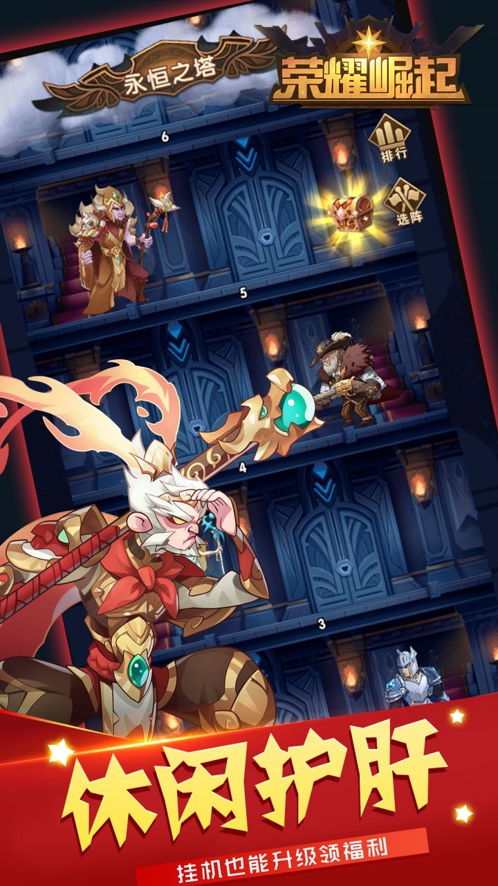 《荣耀崛起》是一款颠覆传统模式的放置卡牌游戏将地城探索玩法融入放置游戏中,在享受挂机乐趣的同时又能体验各种地图内的事件和小玩法。同时融入多种休闲小玩法,可在游戏中获得真正的放松体验。
