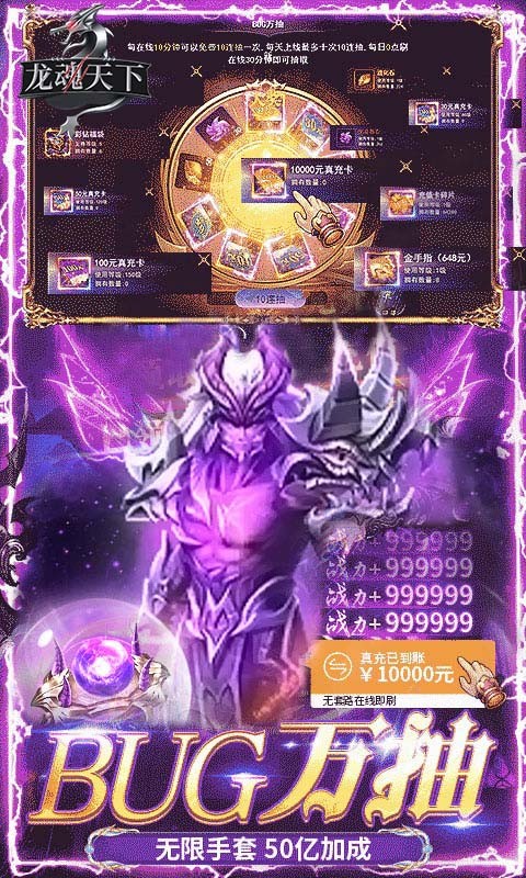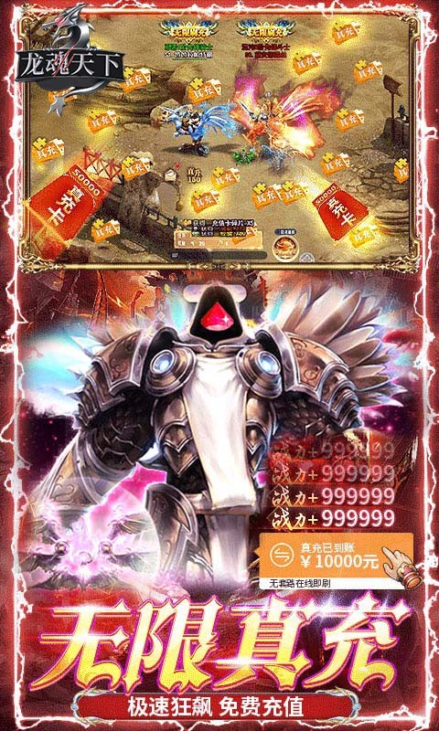一款魔幻风格的角色扮演挂机游戏。赠送免费刷充工具,小手一点真实充值到账,还可激活部分充值活动!开局再送狂飙豪礼、策划定制称号/头像,不用花钱战力也能轻松过千万!在游戏世界里,各位勇士可以通过完成关卡挑战快速提升等级,通过首领挑战获取各种装备提升实力,随着游戏的进行,各项新的玩法也随之解锁,这里有异界的魔神、宠物、幻神,还有强大无比的敌人。谁能不断突破实力成为罗兰城主!谁能掌控被奉为神术的梅林之书!谁又将解救女神成为万人敬仰的神王!