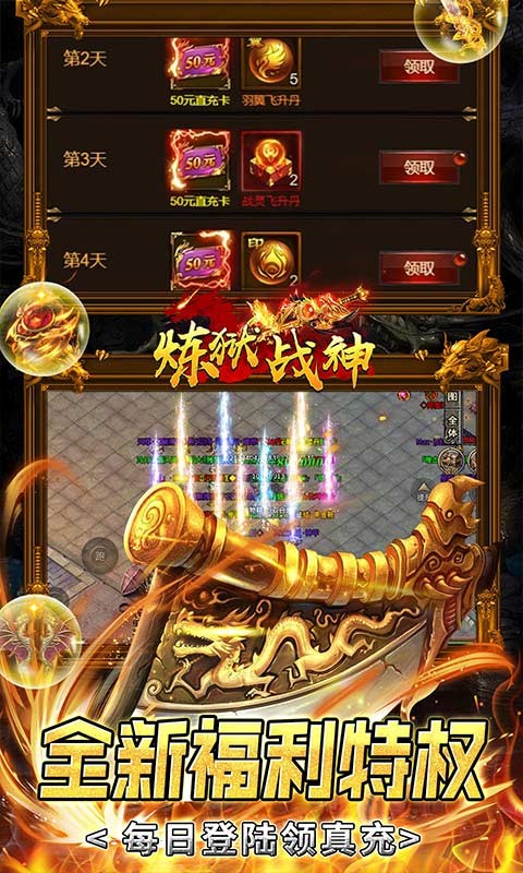 炼狱战神(GM买断爽服)是款全新的GM商城买断版福利传奇!上线送百万元宝、满级vip15,登录升级送海量充值卡,每日手撸点充,全靠个人手速!内置科技钱包,每日无限提取余额,福利送不停!酷炫动态时装,激活买断特权就送!GM商城全新升级,超级魔神海神买断直升满阶!丰富的跨服玩法,无敌的福利,助您快速达到人生的巅峰!再战传奇!