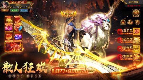 《一战称王》是一款乱世三职业超变传奇。延续玛法大陆经典世界设定,重现道战法铁三角合击,创新良心超变激情打宝,开局秒升助你成就传世霸业!擂战鼓,举宝刀,穿金甲,御神兽,戴光翼,一战屠龙狂虐Boss,万人合击复兴沙城!为兄弟而生,为热爱而战,大嫂助攻,坐等大哥回归带服,与兄弟重现盛世繁华! 【端游还原 沉浸回归】 继承传奇年代神话,网文般任务体验,沉浸式广袤高画质地图,在原汁原味场景中与兄弟携手热血冲锋,攻城掠地制霸沙城! 【超变赚速 高攻爽刷】 新服日日开,神装刀刀爆,越级打宝光柱满屏!公会开荒,跨服热血争霸,全新副本无限制野外PK,万人同屏狂暴刷BOSS! 【系统减负 解放双手】 日签礼登录礼,开局送真充,背包直接拉满,零氪带兄弟逆天改命!自动拾取,挂机助攻,睡后离线经验,散人也能躺上榜! 【自由交易 装备保值】 极限爆率,一键回收,至尊麻痹特戒,极品稀有套装,天命专有属性,神秘宝箱天天轮换,传奇商人无损保值甚至一夜暴富! 【神兽出击 真实社交】 高战猛兽坐骑相随,魂环巨锤趁手,厚血耀眼盔甲护身,炫金神翼飞升,百变神装随你挑选!多样社交,真实组队随传随到!