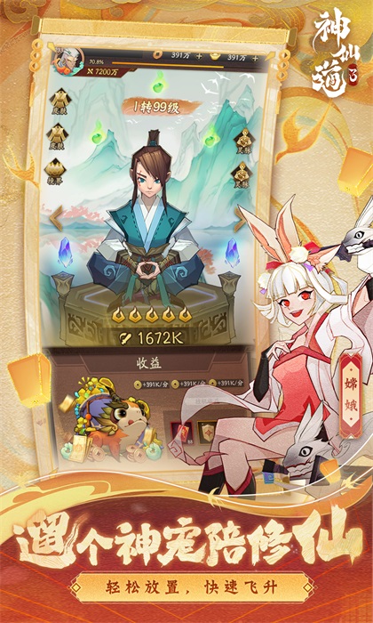 ◆ 遛个神宠陪修仙:轻松放置,快速飞升!