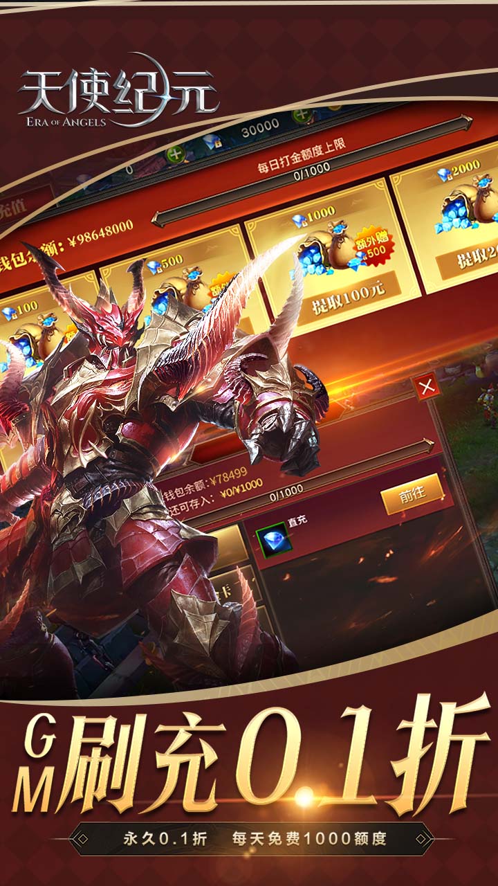 战火重燃,超越奇迹!年度超颜值3D魔幻手游正版授权《天使纪元》来袭,共赴异世魔界激爽开战! 畅享一天300级战力破神、万人混战厮杀夺王带来的超快感;尊享SSS级珍稀炫翼、经典红龙套装等王者荣耀!