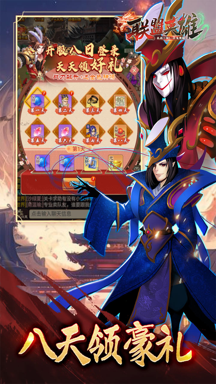 免费转游礼包:元宝抽奖券*100、金色武将自选卡*1、随机进阶丹*200